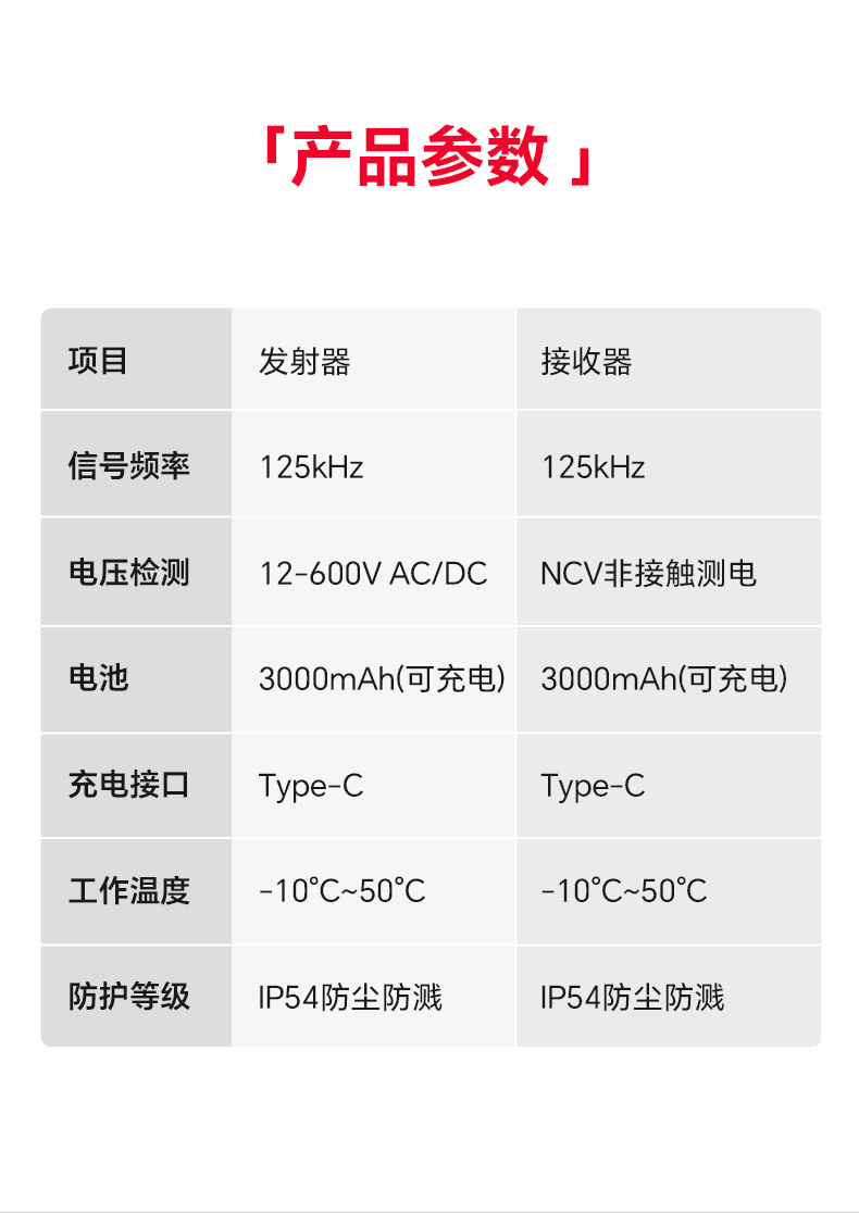 11、接收器和发射器都配备有手电简功能,以便在黑暗的情况下探测线路;